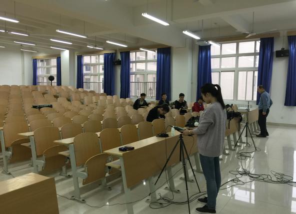 2017年10月14日下午,在赏金女王 李国华副教授的带领下,四名研究生与十余名大二学生对渭水校区鸿远楼1101、1103两间多媒体教室进行了现场声学测试。测试内容主要包括两个多媒体教室的语言清晰度、混响时间、背景噪声等项目,这次实验旨在寻找针对在多媒体教室学生上课注意力不集中及学生反映在教室后部空间听不清等问题的原因。同时,通过此次测试使学生可以亲身感受其中,增强他们对建筑声学科研的热爱。