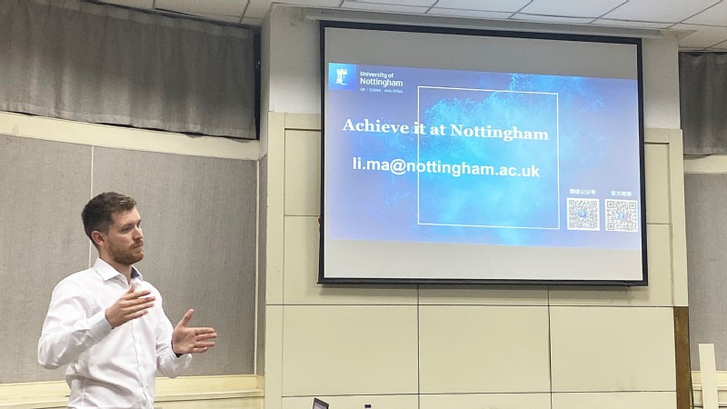 Mr. Joshua Hawkins firstly introduced the basic information of the University of Nottingham. He made a detailed description of the school location, surrounding environment, and the campus facilities, especially the convenient sports facilities. Then, He focused on the school of architecture’s general information, discipline ranking, vacation and etc. At the end, He emphasized the architecture courses and application.