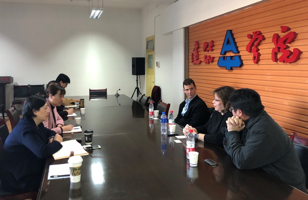 October 25th - 27th in 2019, at the invitation of School of Architecture of Chang’an University, Shauna Corry, dean of School of Art and Architecture Design, University of Idaho, USA, and Randall Teal, dean of the Department of Architecture and associate professor Hu Xiao visited School of Architecture of Chang’an University to discuss the deepening of cooperation. On the afternoon of 27th, dean Shauna Corry and his delegation held a symposium with School of Architecture. The symposium was held in the conference room of School of Architecture. Liu Qibo, vice President of School of Architecture, Yu Xiaohui, assistant to the dean, Zhang Lei, director of the Department of Architecture, Jing Xiaopeng, director of the Department of Urban and Rural Planning, and teachers' representatives Liu Ming and Fu Dongxue participated in the discussion and exchange to further promote the exchange and cooperation between the two schools of architecture. Associate professor Hu Xiao and teacher Liu Ming served as the interpreter of the symposium.