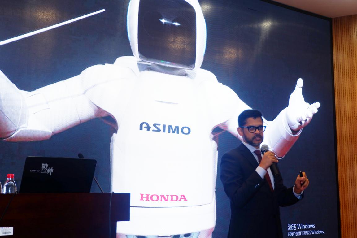 Through the explanation of the development and application of intelligent robots, this lecture discussed the theme of "robots are physical agencies that can make decisions and set goals, and humans should establish an interactive relationship with robots", which was also derived from the book "EVEN WHEN THEY DO NOTHING, ROBOTS ARE EVOCATIVE". As presented first, professor Daas introduced the robot and divided it into biomorphic, mechanomorphic, polymorphic, amorpi four types, told the story of the application of robot in modern society, such as manufacturing products in industrial mechanical arm, in the military to conduct reconnaissance drones, driverless cars in the modern transportation, etc. He put forward the relationship between human beings and robots, and enlighten students on how to get along with robots, how to make use of robots and how to carry out urban construction in accordance with the development of robots in modern society.