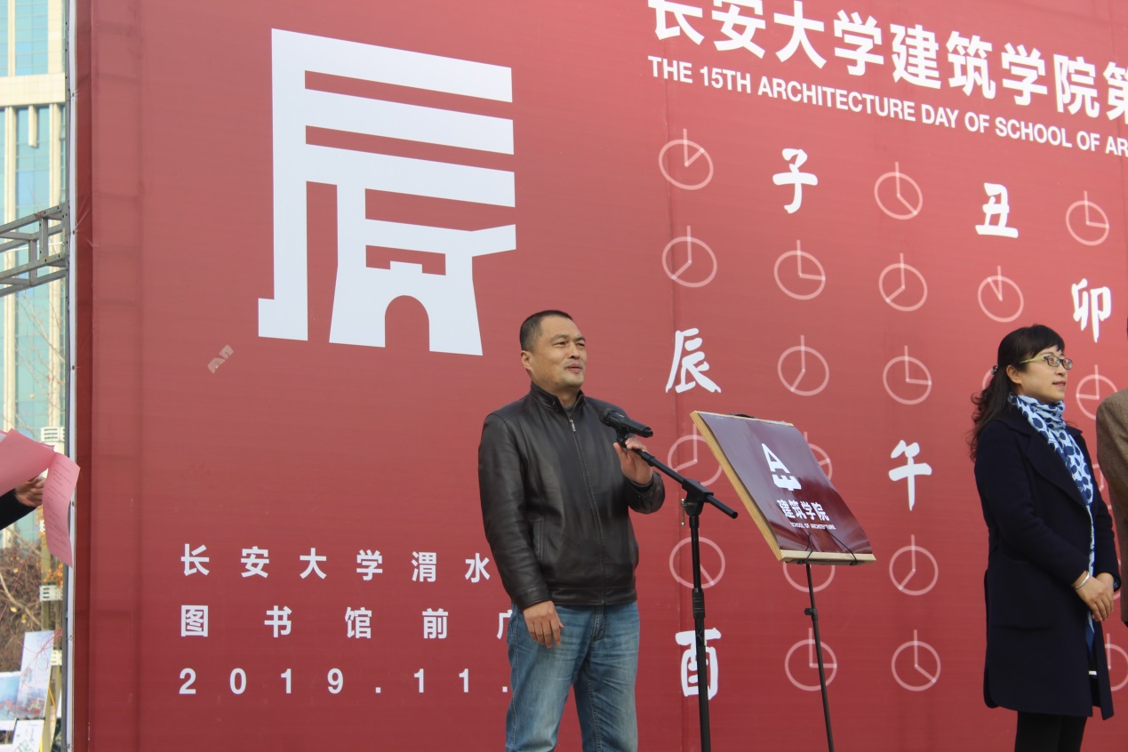 Vice president of Chang 'an University Zhao Xiangmo, Vice minister of the propaganda department of the university party committee Yang Xuejun, Director of the management office of the south campus Zhang Pengfei, Vice minister of the school affairs department Li Xiaoqin, Deputy director of the academic affairs office Wei Yi, Political commissar of the security department Hui Liping, Secretary of the communist youth league committee Zhang Yong; party and government leaders of architecture school, President of Chang 'an University Urban Planning and Design Institute Lin Gaorui attended the opening ceremony. The department directors of architecture school, secretary of the party branch, the 15th Architecture Day advisor group, representatives of faculty and students also attended the opening ceremony.