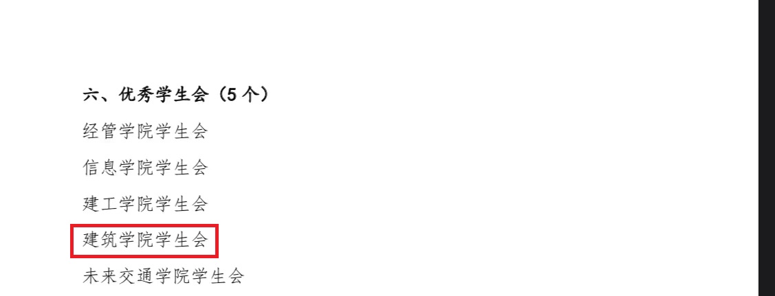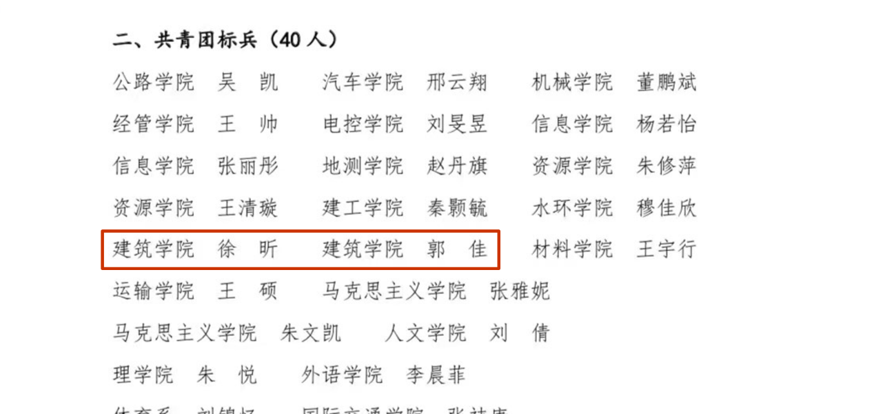 在先进集体表彰中,赏金女王 团委荣获“五四红旗团委”,学生会荣获 “优秀学生会”,建筑日系列活动荣获“校园文化活动优秀品牌”,2个团支部荣获“五四红旗团支部”, 3个团支部荣获“活力团支部”,4个团支部荣获“优秀主题团日活动”;在优秀个人表彰中,2人荣获“共青团标兵”,48人荣获“优秀团干部”,83人荣获“优秀团员”,3人荣获“魅力团支书”,9人荣获“优秀青年志愿者”,14人荣获“网络新媒体宣传优秀个人”,25人荣获“校园文化活动优秀个人”,6人荣获“校园运动达人”;在十四运会和残奥会表彰中,9人荣获“优秀志愿者”,4人荣获“优秀学生演员”;在抗击新冠肺炎疫情表彰中,4人荣获“抗疫青年标兵”,23人荣获“优秀青年抗疫志愿者”。