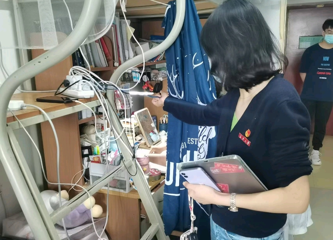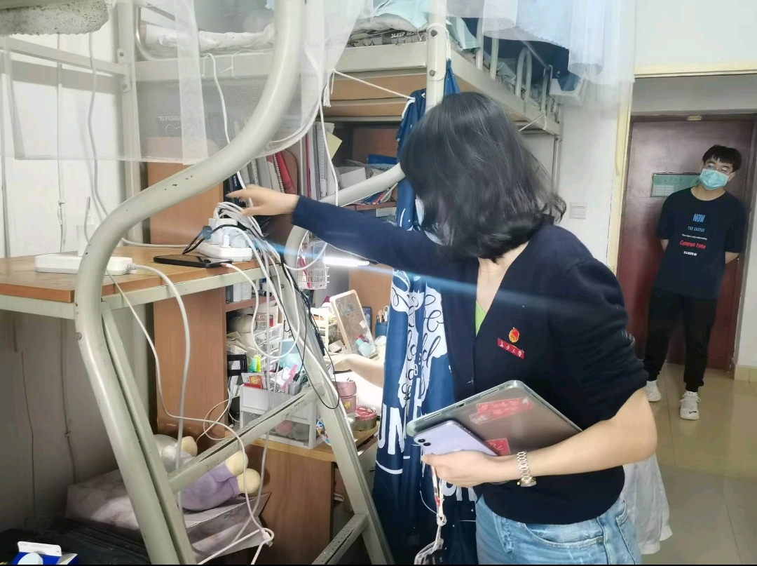 本次检查内容包括宿舍卫生检查与宿舍安全用电,经检查,大部分宿舍未发现违规用电问题 ,一少部分宿舍存在的电器安置不当等安全隐患,辅导员便引导学生做出相应的整改措施。在检查过程中,老师们细心检查所有可能存在的安全隐患,记录各个寝室的查寝情况。