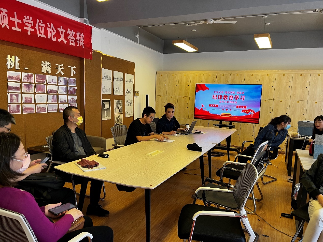为迎接党的二十大,落实全面从严治党要求和立德树人根本任务,9月26日上午,建筑系扎实开展纪律教育学习宣传月系列活动,活动由建筑系主任陈斯亮副教授、建筑技术所所长樊禹江副教授轮流主持,建筑设计系、建筑技术所全体教师参加活动。
