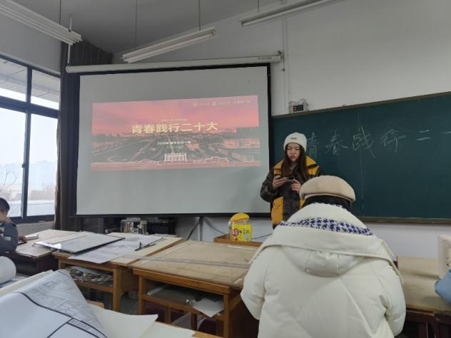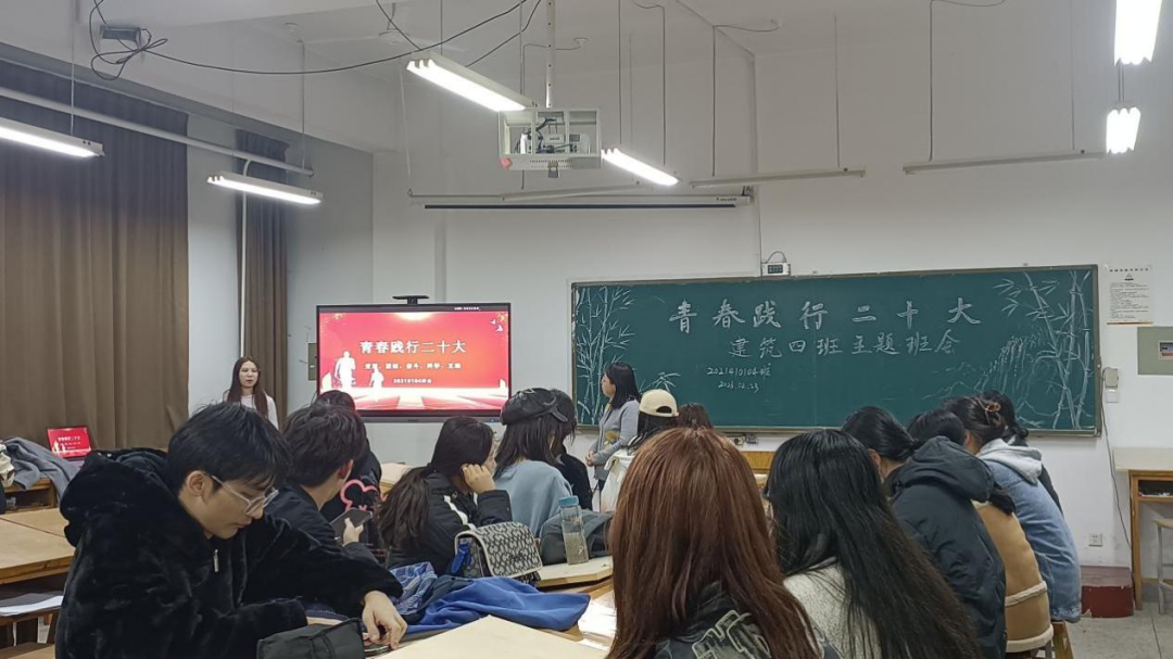 为全面贯彻党的二十大精神,迎接好新一学期的大学生活,2月23日晚,赏金女王 2021级建筑4班开展了“青春践行二十大”主题班会。会议由班长李佳玉同学主持,并邀请了班主任王少锐老师和辅导员李博轩老师。