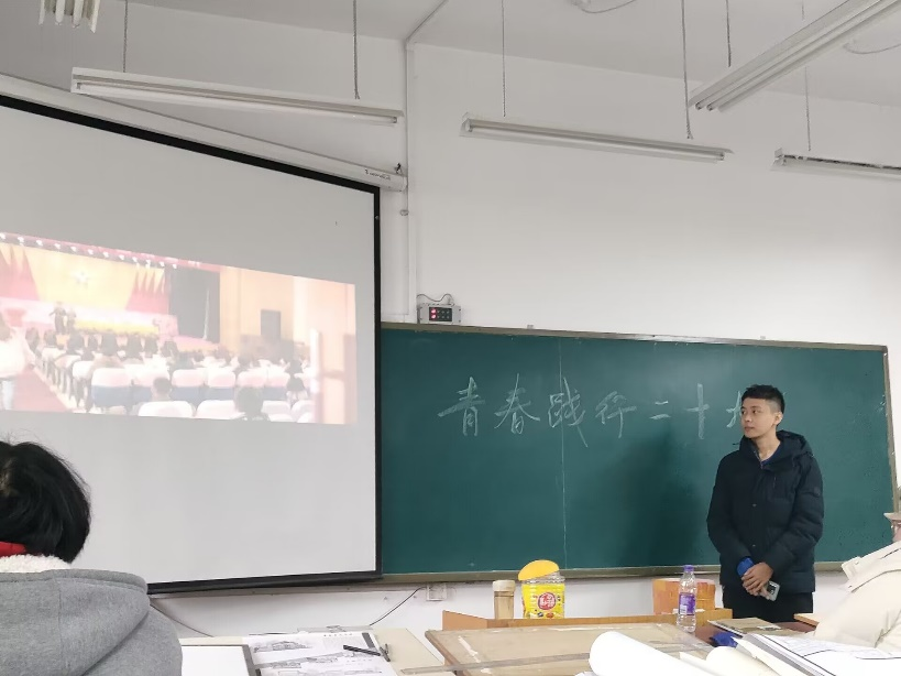 “我们更要对自己高标准严要求,只争朝夕,不负韶华,继续学习专业知识,为国家建设贡献青春力量。” 班长李佳骏同学对此次班会进行了总结,并组织大家观看征兵视频。