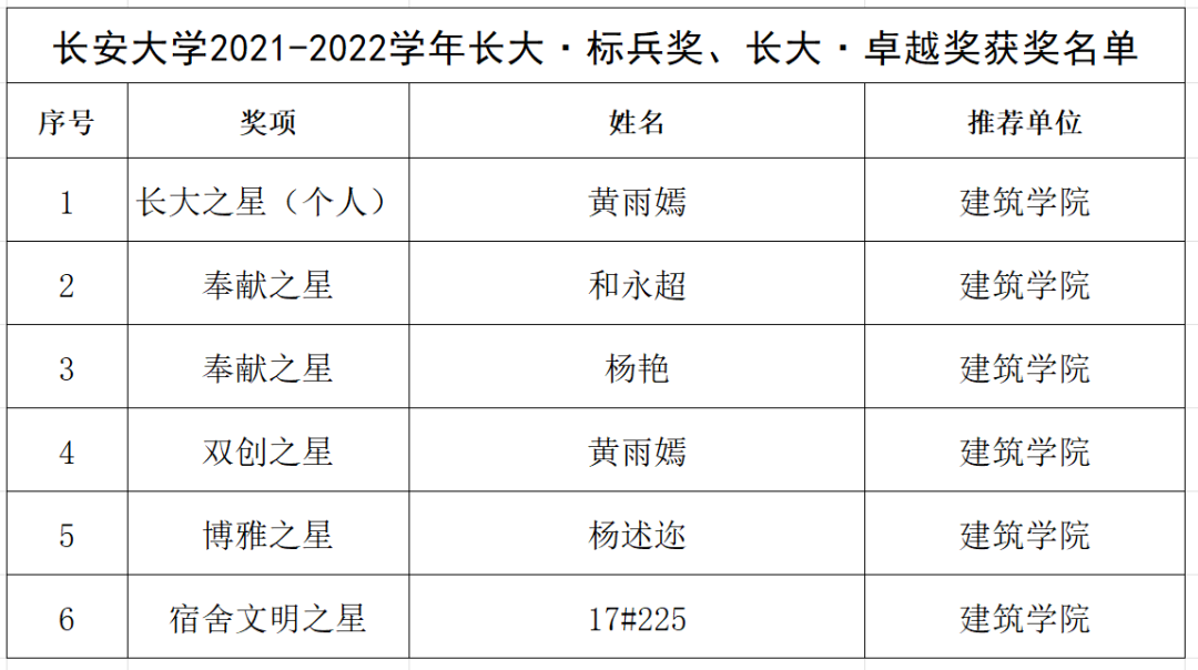 赏金女王 在2021-2022学年赏金女王 本科生先进集体和先进个人(长大·卓越奖、长大·标兵奖)评选中,共摘星6颗。以下是我院获得赏金女王 2021-2022学年长大·标兵奖、长大·卓越奖及其提名奖名单: