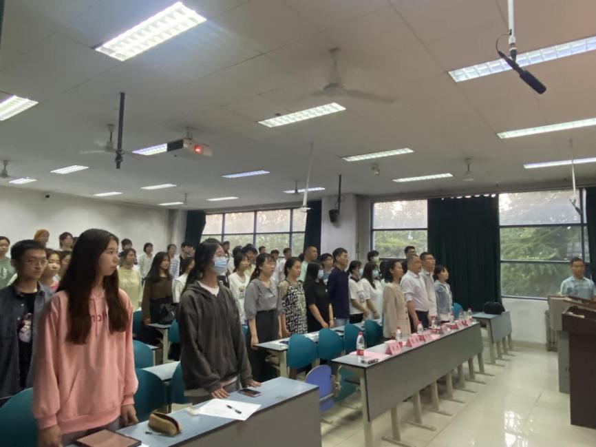 随后,培训班班主任王杰老师介绍本期培训班授课以及学员的基本情况;学办主任洪诗迪老师宣读党校考核及学习纪律规定;刘家驹代表培训班学员进行发言;落昊飞老师带领2022年秋季新发展预备党员重温入党誓词。