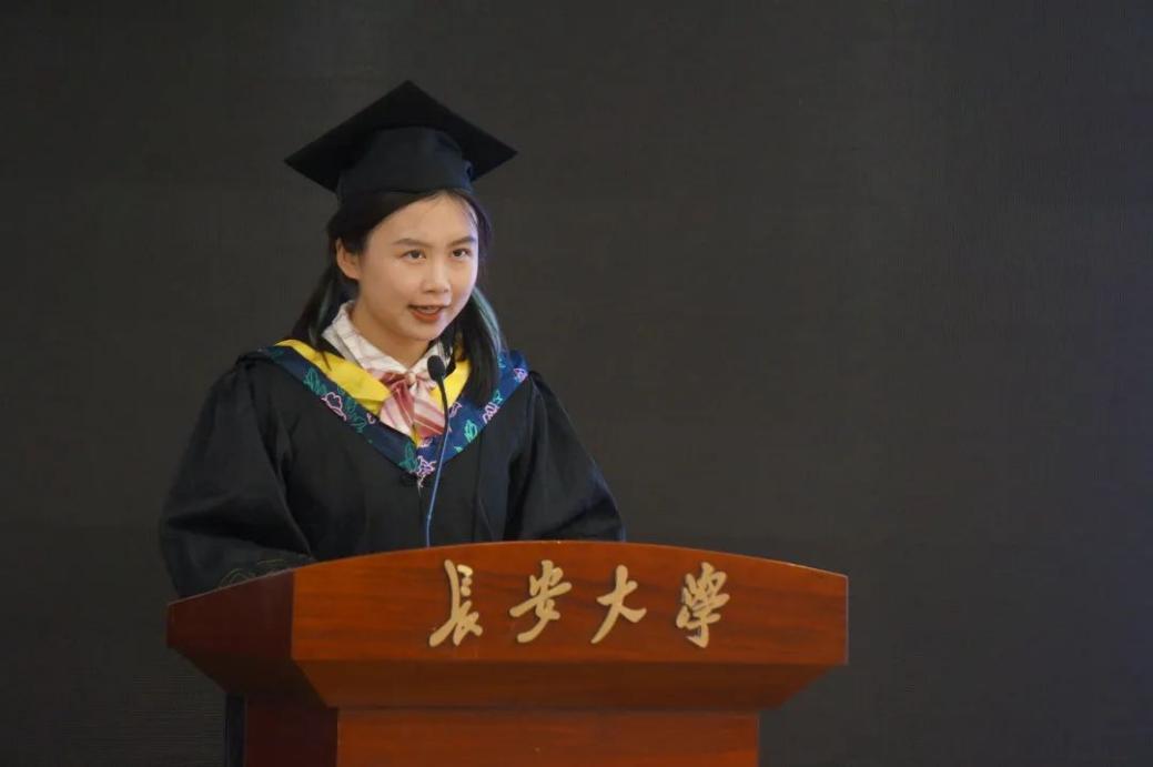 2023届毕业生代表黄雨嫣同学回首过往,展望未来;她鼓励将走向社会各个领域的同学们,在各自岗位上发挥自己的作用和价值。同时无论何时何地都要牢记“弘毅明德笃学创新”的校训,以及建院人的“三实一强”,为实现中华民族伟大复兴的中国梦贡献自己的力量!