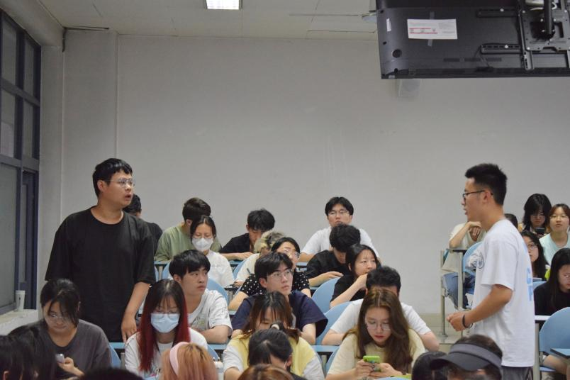 随后,申一彤老师对竞赛活动进行补充说明,分享了往届同学们的获奖情况,并讲解了部分获奖项目。最后,刘洋同学就暑期社会实践活动的具体内容、活动对象,实践方式,申报类别,时间安排以及有关要求等做出详细的介绍,并对一些学生的问题进行了解答,使得大一、大二的同学们对暑期社会实践活动有了清晰的认识,从而促进同学们后续活动的顺利展开。