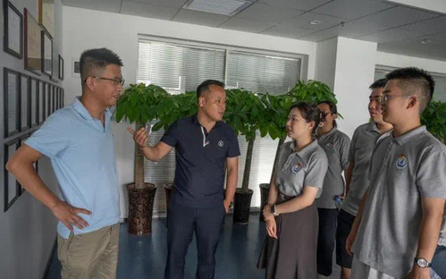 赴安徽“感校企互联,观行业新生”暑期社会实践队在指导老师落昊飞的带领下,前往安徽省校友企业木星科技有限公司进行参观学习,安徽木星科技董事长郭栋梁和总经理石勇对于实践队伍的到来表示热烈欢迎。