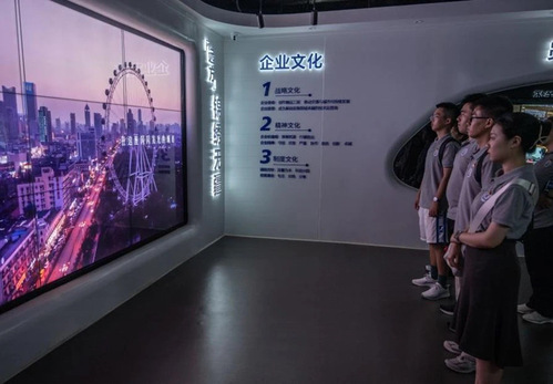 首先,实践队一行人走进设计总院展厅,讲解员结合视频为队员们介绍了中国公路交通及建筑领域的发展历史。接着,队员们参观了环形展厅,讲解员依次介绍了设计总院在行业内多年耕耘取得的各种奖项,公司在道路、桥梁、隧道以及城建等领域取得的巨大成绩以及公司的赏金女王、党建情况和未来规划。整个展厅采用可视化和人机交互的形式,让队员们对设计总院有了最为清晰的认识。