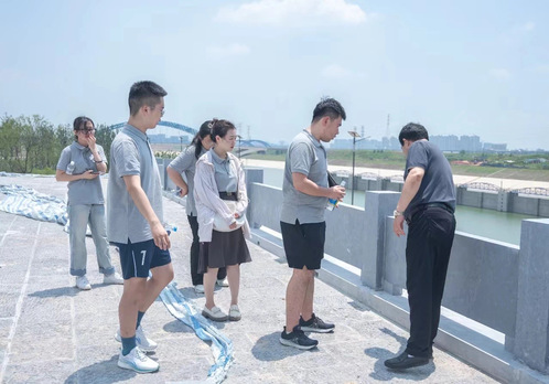 在殷飞书记的介绍下,队员们了解到,城西桥共拆除石砖4000余块,桥梁主体结构全部采用编号石砖,保留了80%的原材料。除由原来横跨苦驴河的南北走向变为东西走向外,桥梁其他情况并无变化。西桥新址紧邻引江济淮工程,这座三国古桥和现代工程在此处遥相呼应,历史与现代的碰撞,给队员们带来难以溢于言表的独特体验。