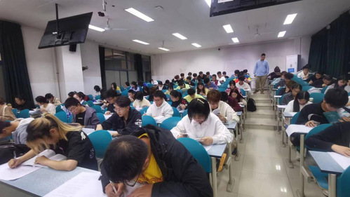 考试时间为19:00-20:30。考试期间每个同学都做到了严守纪律,精力集中,认真答题。通过以考促学的方式督促大家学习,不仅营造了良好的集体学习的氛围,很好地纠正了部分同学懒惰、厌学的问题,端正了学习态度,同时也帮助学生熟悉了学校考试规则,树立了严守考场纪律的意识。