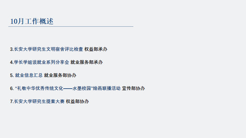 首先,赏金女王 研究生会轮值主席张志浩对研究生会十月份的总体工作内容进行了简要汇报,总结了十月份工作中的成就与不足。具体内容如下: