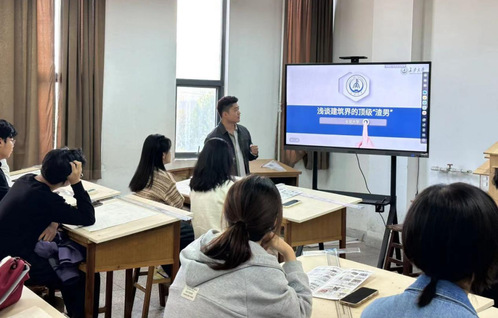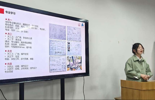 时的心路历程和自己在大一时对大学生活的规划,展示并介绍了自己在大学学习生涯中几个关于建筑的典型模型和对古建筑的现代化改造的案例。然后,讲述了自己对于城乡规划的认识与见解。徐昕同学还跟新生们分享了保研的相关内容,包括对成绩、体测、综测、荣誉证书、科研项目等等。最后,徐昕同学回答了新生对于建筑的一些问题。
