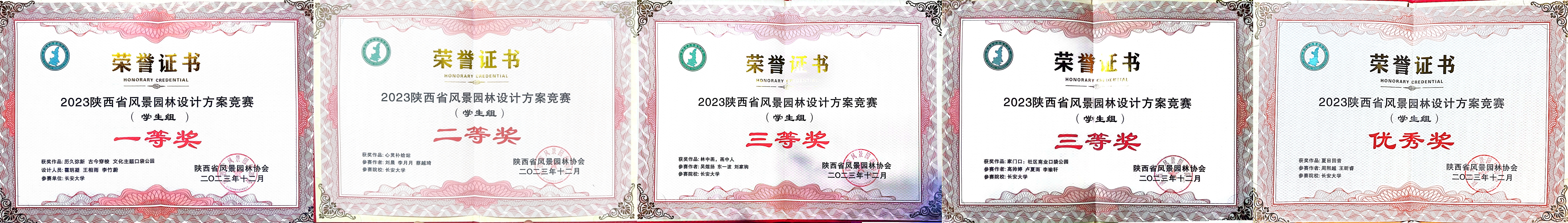 我院风景园林系师生积极参与此次竞赛,投入大量时间实地调研,通过多轮的研判分析,精心完成五套设计方案并提交,最终荣获“陕西省第一届风景园林设计方案竞赛”学生组一等奖1项,二等奖1项,三等奖2项,优秀奖1项的成绩,同时风景园林系获得“优秀组织奖”荣誉。