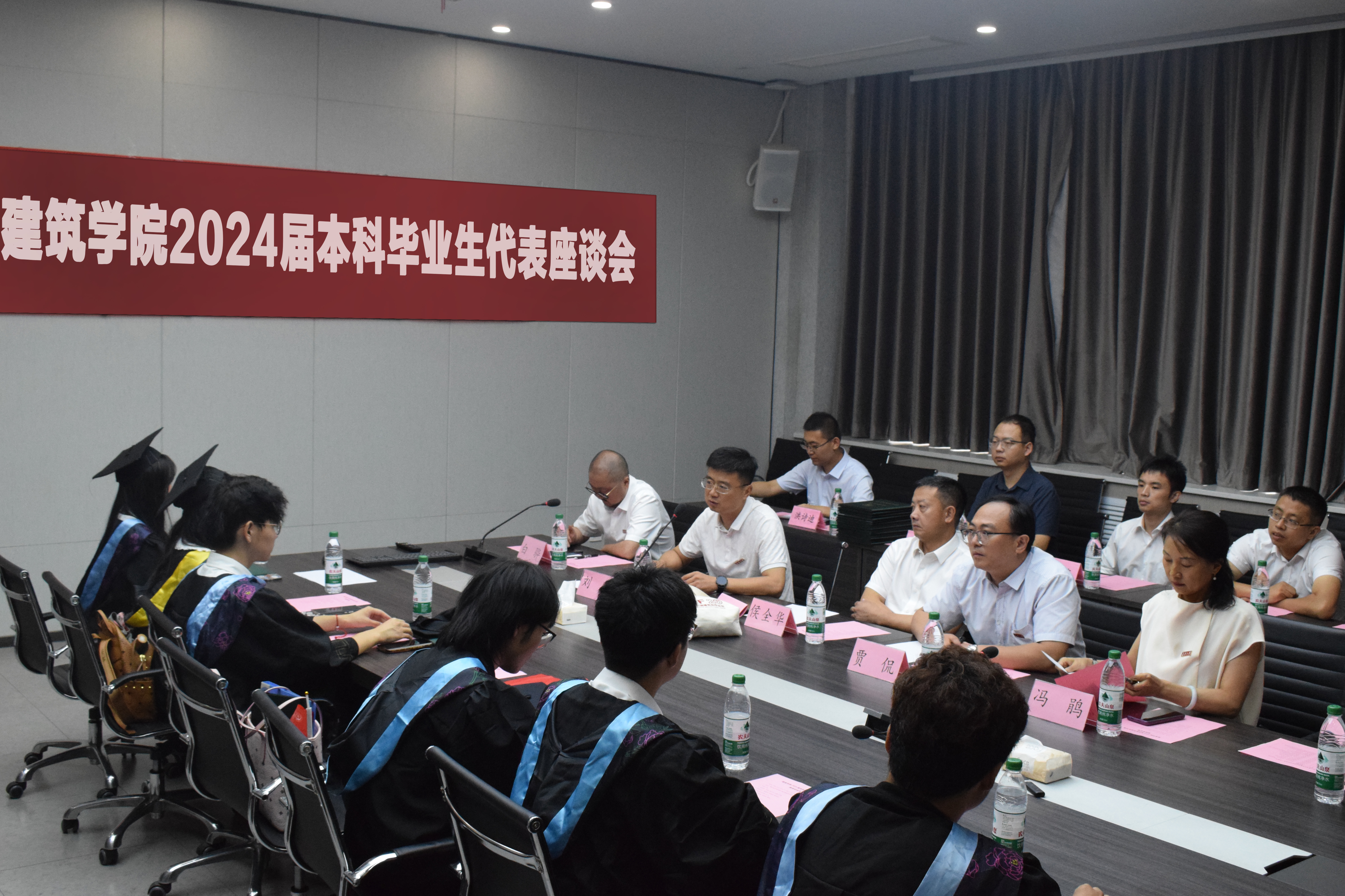 党委书记贾侃,院长侯全华,党委副书记、纪委书记、副院长冯鹃,党委副书记刘鹏,副院长白骅,建筑系主任陈斯亮,城乡规划系主任陈稳亮,本科教务员刘旭东,学生工作办公室主任兼2024届本科生毕业班辅导员洪诗迪,1+3兼职辅导员谭宇以及13名本科毕业生代表参加会议。