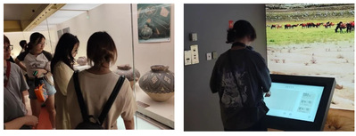 7月14日下午,实践队前往甘肃省博物馆进行实地调研。在馆中,多媒体技术的运用,互动体验环节的设置,使游客们在近距离接触和感受古丝绸之路的参观之旅中,更为直观和富有趣味性地加深了对丝绸之路历史背景及其沿线驿站的理解和认知。这使实践队员们在接受古文化熏陶的同时,也更明确了遗产数字化保护兼具趣味性的重要性。