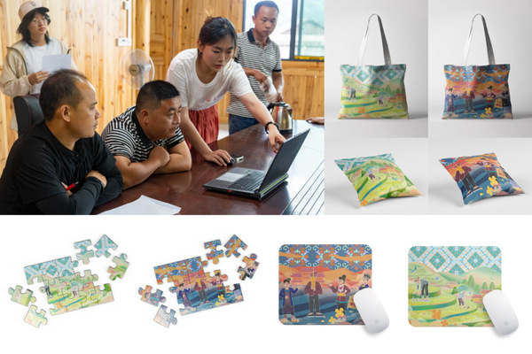 应老巴村的邀请,实践队集思广益,通过与村干部深入交流设计需求,结合老巴村的独特自然风光、民族文化与实践期间的所见所闻,设计出富有创意的老巴村LOGO。同时实践队还精心绘制设计了一系列宣传画,以生动的画面讲述老八村的故事,旨在将系列宣传画印制在各类文创产品、节日游会的装饰品上,通过传递视觉艺术的力量,提升老八村的知名度和吸引力,为乡村振兴注入新的活力。