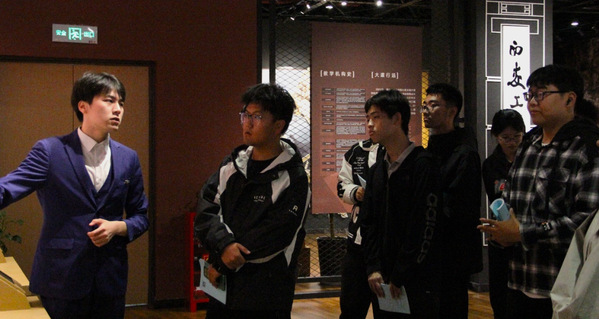 讲解员绘声绘色地讲述着学校历史上的精彩瞬间和杰出人物事迹,同学们听得津津有味。当提及众多知名校友在学术领域取得卓越成就时,现场响起阵阵赞叹声。大家一边专注听讲,一边仔细端详展品,遇到疑问时,同学们积极地与讲解员互动交流,共同探讨学校历史的点点滴滴。