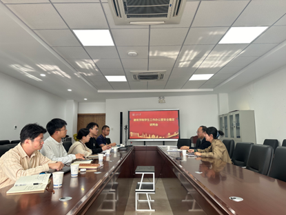 学生工作办公室在朝晖园学生社区二楼交流研讨室召开十月安全稳定研判会,思创中心办公室主任武永江、院党委副书记王妍婷和学办全体专兼职辅导员参加本次会议。