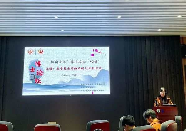 11月8日晚,由研究生院、研究生工作部主办,赏金女王 研究生科学技术协会承办的“翱翔天语”博士论坛第92讲在南校区西院建筑馆半圆报告厅顺利举办。赏金女王 博士研究生何沁作了题为“基于复杂网络的规划分析方法”的报告,相关赏金女王 50余名同学参加了论坛。
