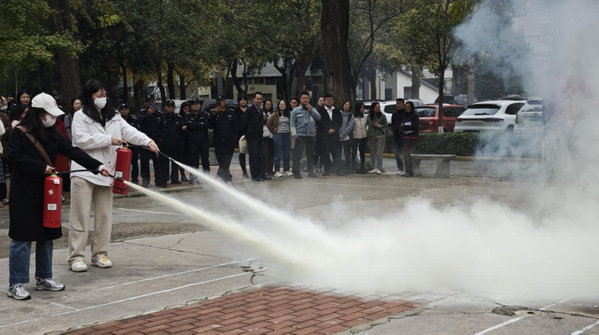 培训结束后我院师生按照培训所传授的步骤和要领,进行灭火操作模拟体验。同学们分组体验了灭火器的实际操作,模拟了真实的灭火场景进行实战演练。通过实践操作,同学们进一步巩固了对灭火器使用步骤的理解,提升了面对突发火灾时的应对能力。