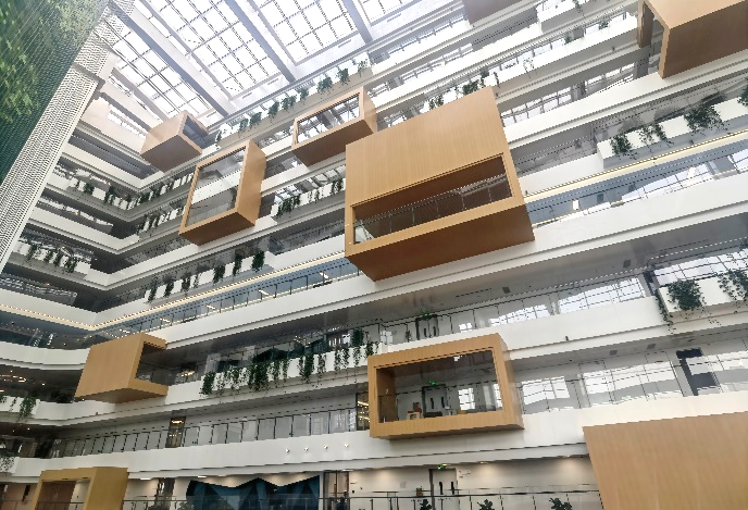 The students visited the atrium space, work area and rest area of the building in turn, and observed closely the environmentally friendly and low-carbon green building technology, digital office system and intelligent management system used in the building design, construction, operation and maintenance process ; they realized the subtle influence of design on people in the building and their behavior. Through the embodied experience in the building and the explanation of the staff, the students were deeply attracted by the application of digital technology in the building, and deeply felt the guidance of digital technology on architectural design and the combination of architectural intelligence and behavior.