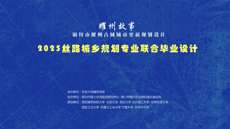 本届联合毕设以“耀州故事”为主题,以耀州古城为主体,以规划基地的韧性城市更新为核心,依托耀州地域禀赋与资源特色,立足现实问题与需求,聚焦文化遗产保护传承、城市空间与设施优化、产业策划与培育、人居环境改善等现实挑战,把如何更好挖掘耀州历史文化资源,实施城市更新行动,延续城市记忆,推动耀州城市高质量发展,作为本届毕业设计的主要任务。