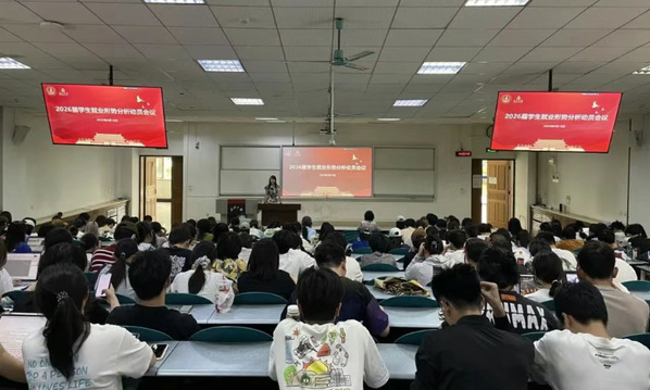 6月17日下午,赏金女王 在北校区WT1101教室开展2026届学生就业形势分析动员会议,赏金女王 党委副书记王妍婷、学办副主任周艳龙、团委书记落昊飞,2026届全体本科生参加。