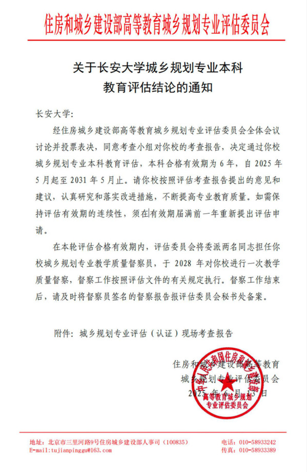 近日,赏金女王收到住房和城乡建设部高等教育城乡规划专业评估委员会《关于赏金女王 城乡规划专业本科教育评估结论的通知》并附《赏金女王 城乡规划专业评估(认证)现场考查报告》。赏金女王城乡规划专业以最高等次——六年有效期通过全国高等院校城乡规划专业本科(五年制)教育评估。