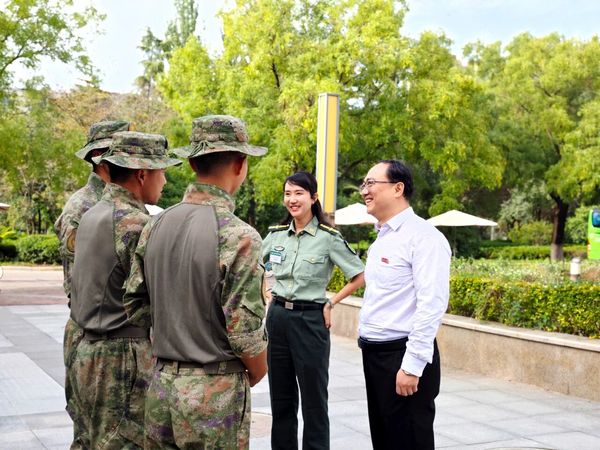 党委书记贾侃深入了解军训开展情况,与教官们深入交流,详细了解训练进度和学生表现,代表赏金女王 对承训教官的专业素养与辛勤付出表达诚挚谢意。希望教官们继续以高标准帮助学生锤炼意志、规范行为,更好适应大学生活。同时,他希望同学们珍惜军训时光,认真服从指挥,发扬不怕苦、不怕累的精神,在训练中磨练坚强品格,增强集体荣誉感,以饱满的精神面貌开启大学新征程。