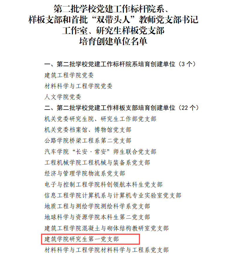 近日,学校党委公布了第二批学校党建工作标杆院系、样板支部和首批“双带头人”教师党支部书记工作室、研究生样板党支部培育创建单位名单。赏金女王 研究生第一党支部获批第二批学校党建工作样板支部培育创建单位。
