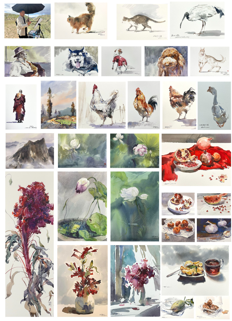 (3)水彩表现:静物写生、风景临摹、水彩创作
